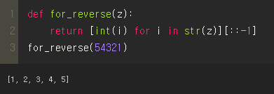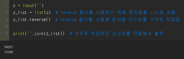 z_list = list(z) # reverse 함수를 사용하기 위해 문자열을 list로 치환