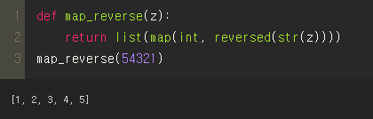 사진의 방법처럼 map 식을 사용해주어 숫자 n을 int값으로 끝(-1)자리부터 앞까지 출력하는 것을 list화 할 수 있습니다.